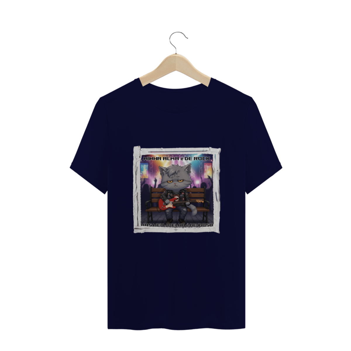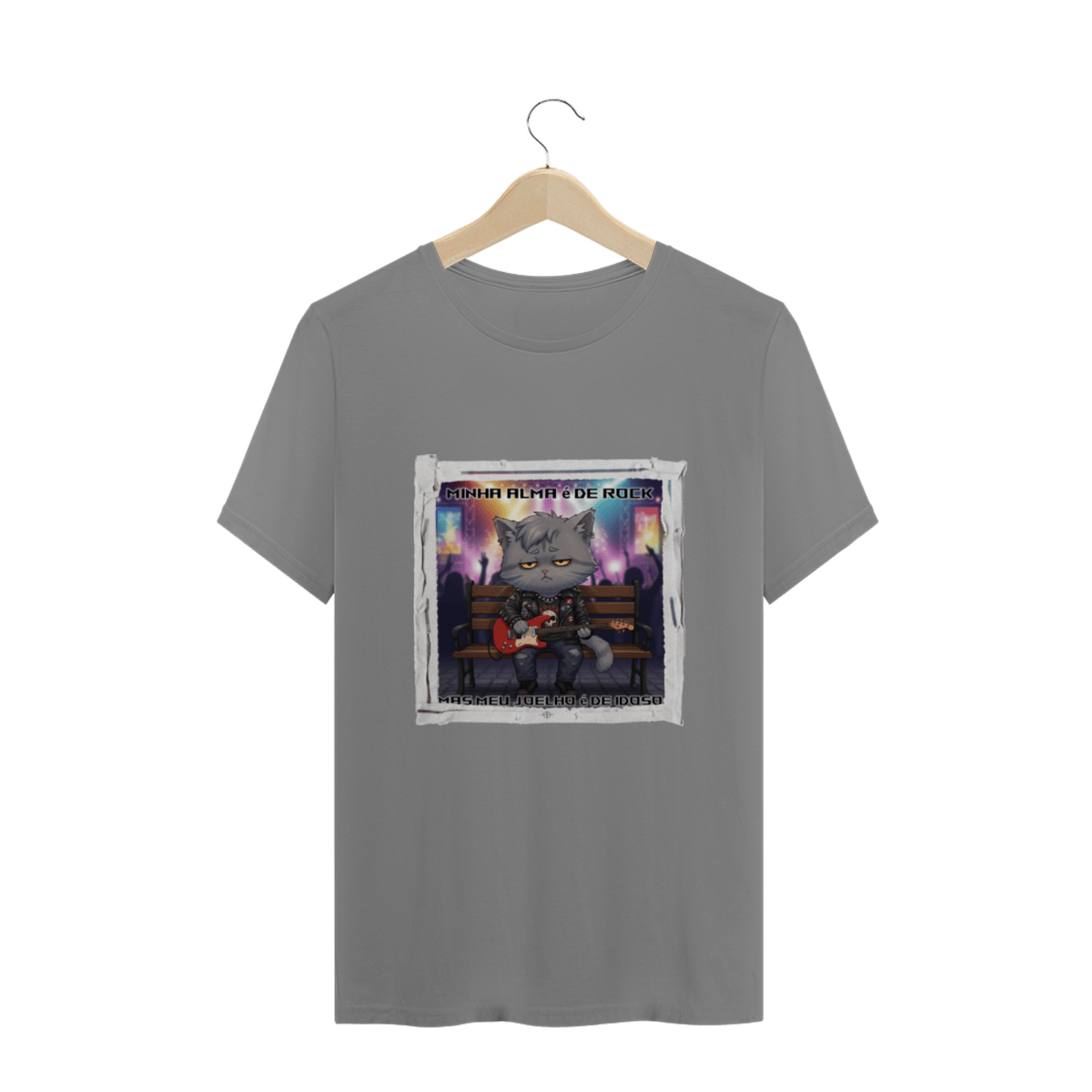 Camiseta plus size unissex Minha alma é de rock, mas o joelho é de idoso.